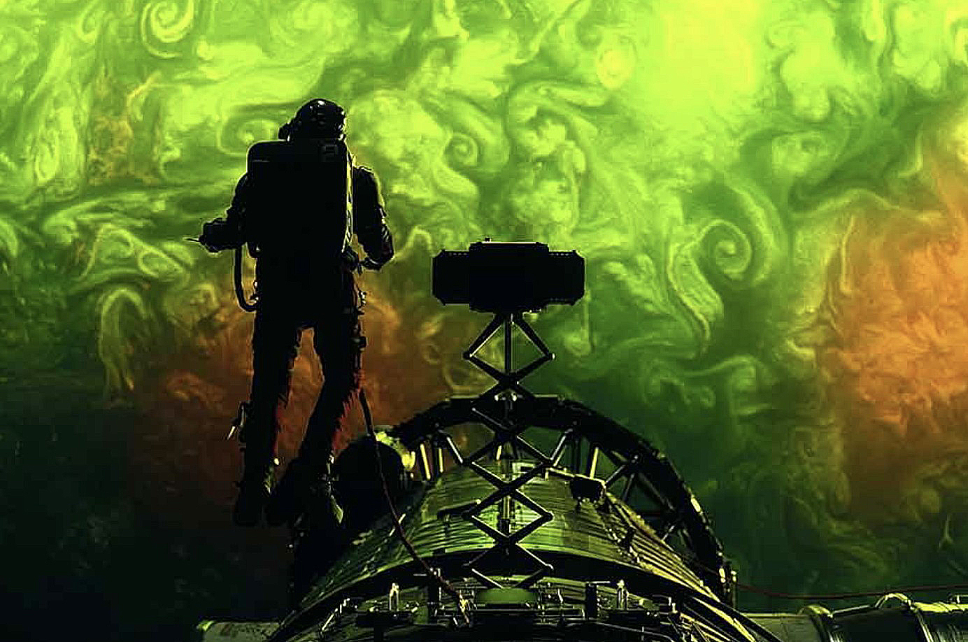 A partir de ahí, la película se construye sobre un equilibrio constante entre el miedo y la curiosidad. El descubrimiento de la otra nave no es solo un giro narrativo, sino también una experiencia visual en la que dos estructuras se enfrentan como dos formas de entender la materia. Funciona como un gran cuadro del espacio, construido con los colores más surrealistas y hermosos que se pueden imaginar.